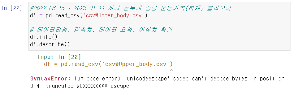 Allen93 2023. 9. 22. 21:59파이썬으로 csv 파일 읽기를 하는 도중 아래와 같은 오류가 떴습니다.